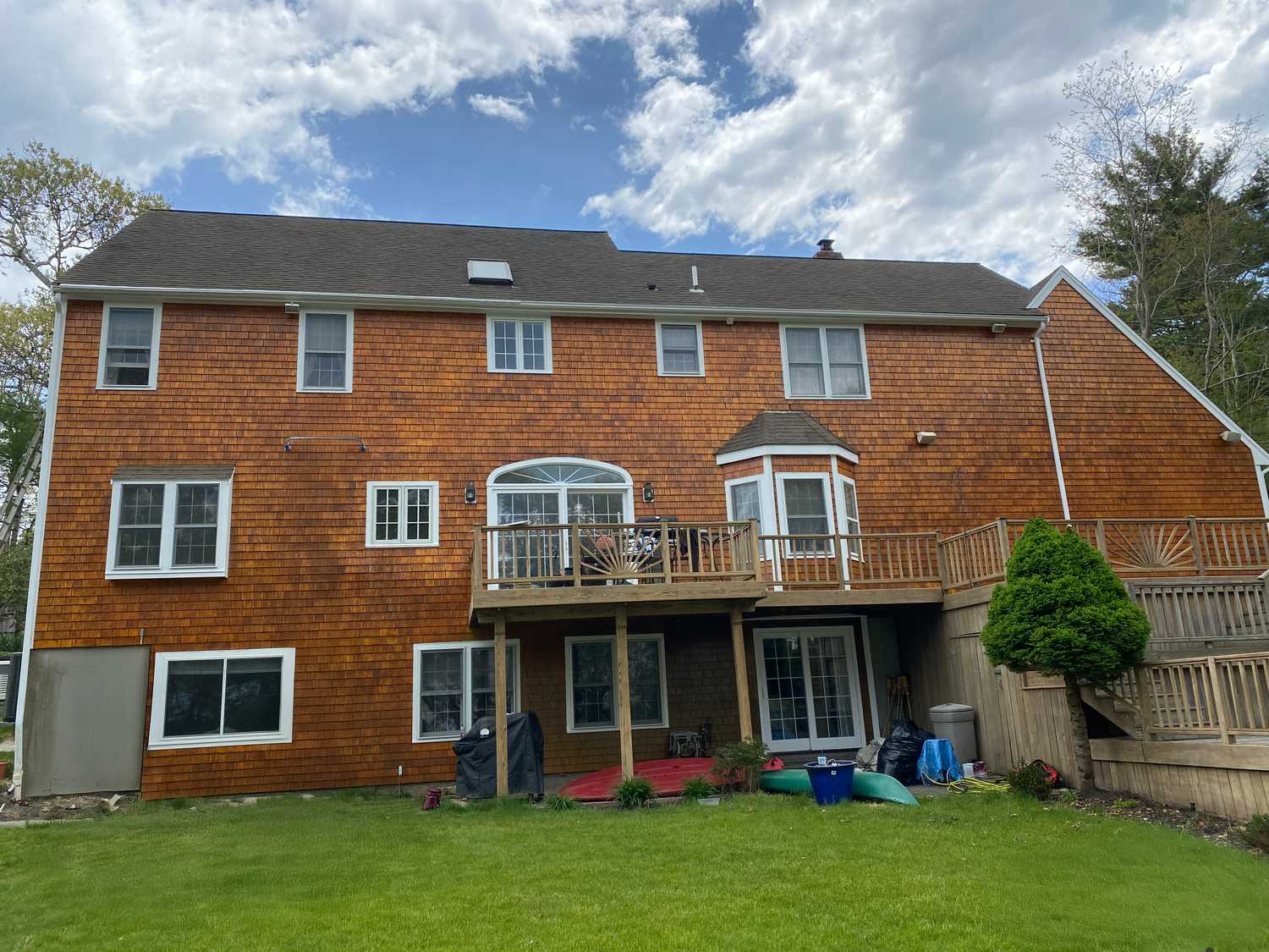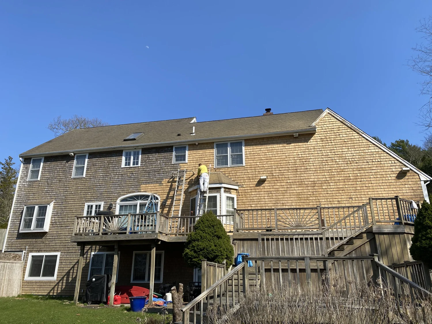 This is a a one of our usual paint job. All of our paint restoration projects includes sanding, caulking, fastening with stainless stel fasteners, priming and finally painting. This attention to detail provides our customes with the best painting experience that will last 12 - 15 years depending on color and sun exposure.